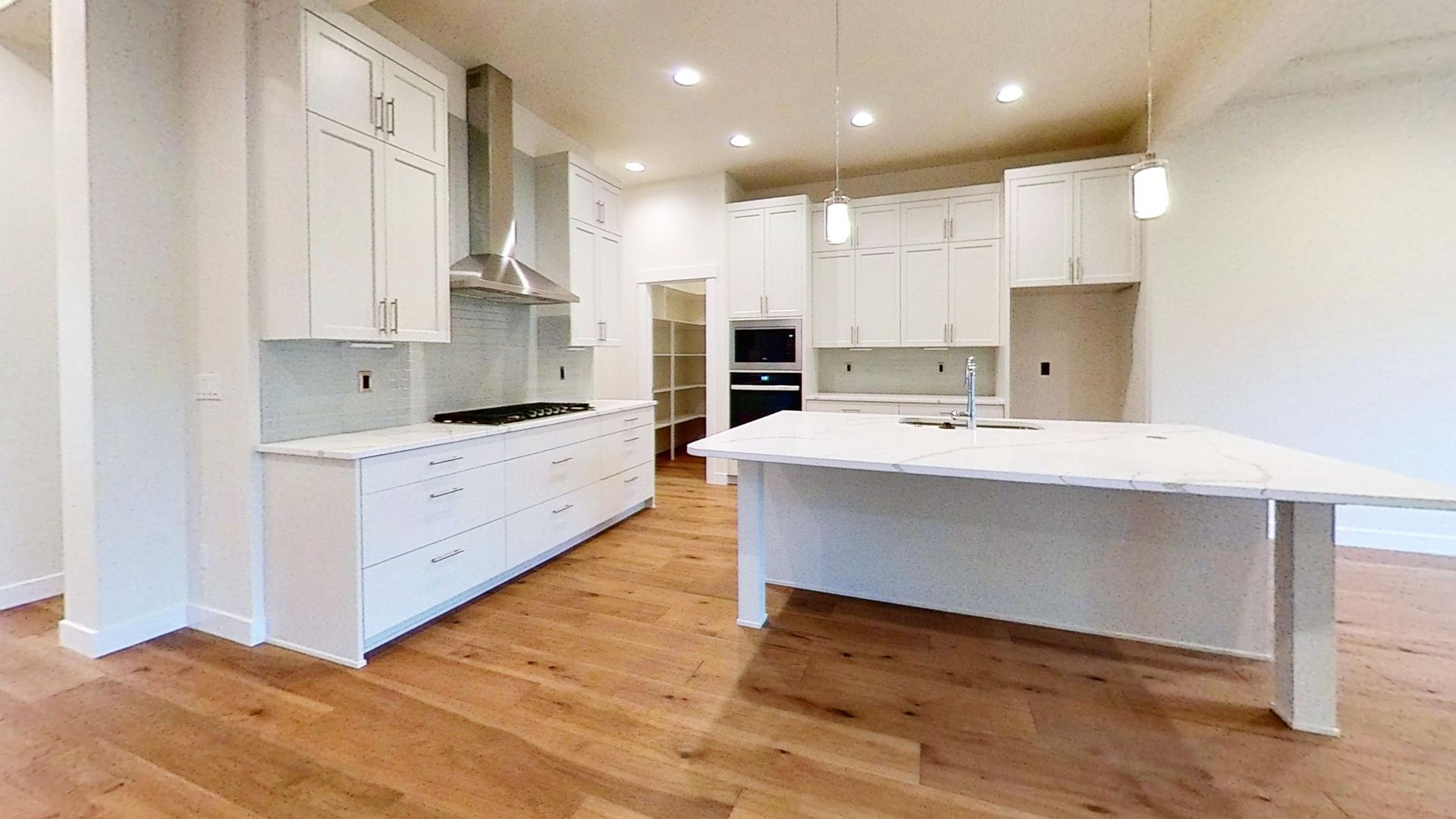 This thoughtfully designed home features two suites situated at opposite ends of the home for maximum privacy. Enjoy modern white countertops, black and stainless-steel appliances, and an open, light-filled layout.