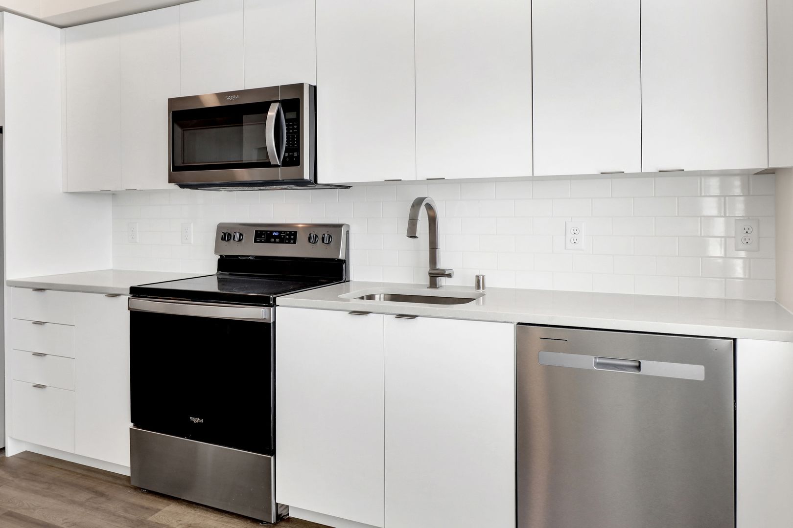 Indulge in the luxury of our spacious Studios featuring high-end finishings such as exquisite quartz countertops and eco-friendly appliances, including a refrigerator, dishwasher, stove, oven, and washer and dryer.