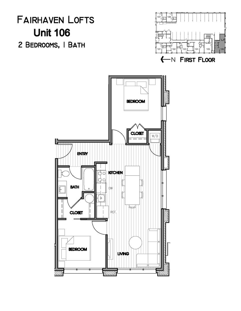 Modern 2-bedroom, 1 bathroom loft conveniently located in downtown Fairhaven near many local restaurants, cafes, and shops. This corner unit features ample natural light, air conditioning, washer/dryer in unit, stainless steel appliances, white shaker cabinetry, quartz countertops, and under-cabinet lighting. Secure Garage parking, controlled access building with parcel area. Small pets possible upon approval with additional fees. Don't miss out!