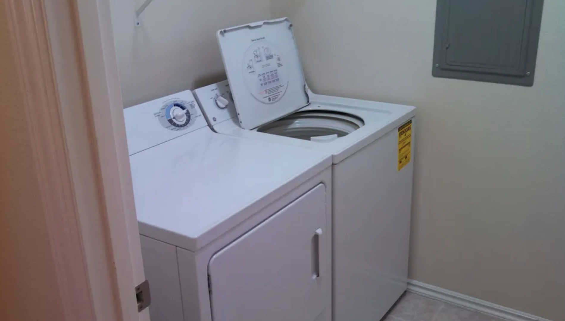 Inside, the home offers a spacious and inviting living room perfect for relaxing or entertaining, along with a separate utility room complete with a washer and dryer for added convenience. The well-designed kitchen comes fully equipped with modern appliances, including a dishwasher, stove, oven, refrigerator, and microwave, giving you everything you need for effortless daily living.