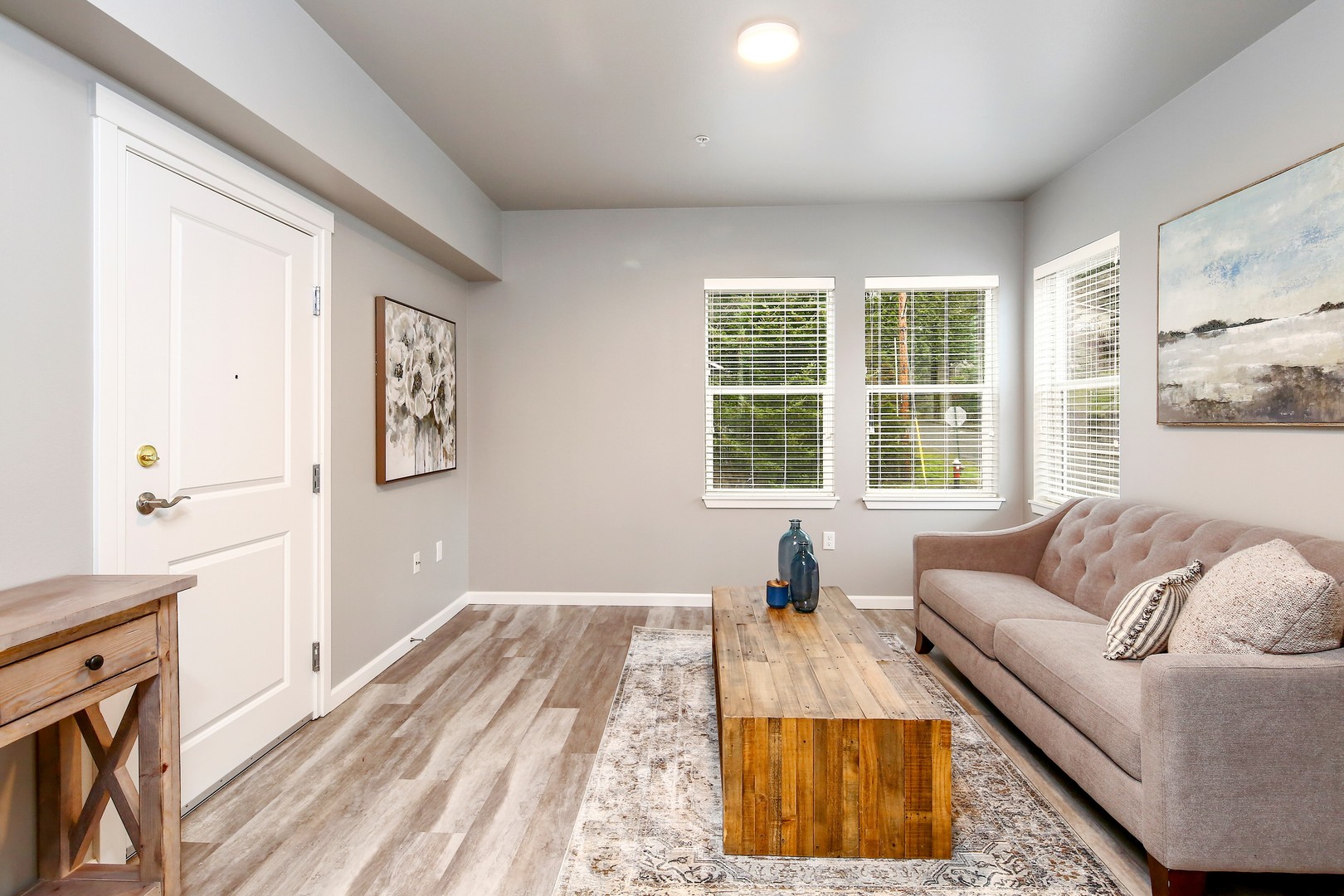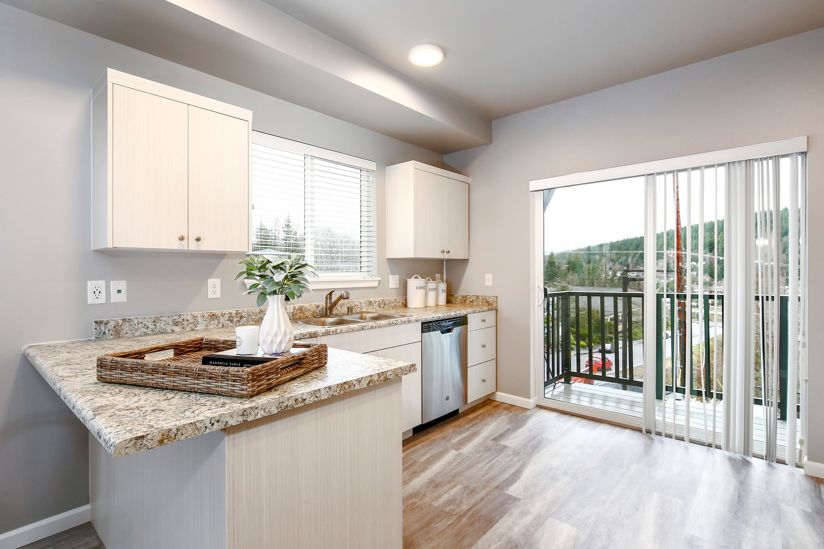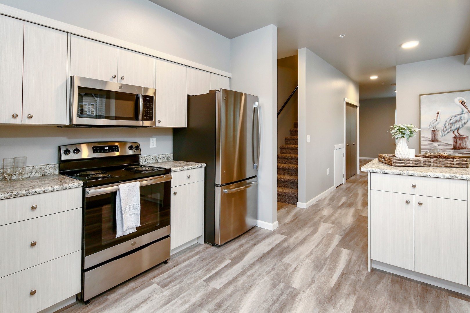 This beautiful complex offers a variety of floor plans including studio, two and three bedroom apartment homes. Each unit styled with vinyl plank flooring and well thought out floor-plans. Enjoy the stunning details each unit offers including all stainless steel appliances; dishwasher, stove, refrigerator and microwave. All units equipped with washer and dryer. Tenants pay $65/month flat fee per tenant for water, sewer, and garbage. Tenants also responsible for electricity. Internet is included in rent.