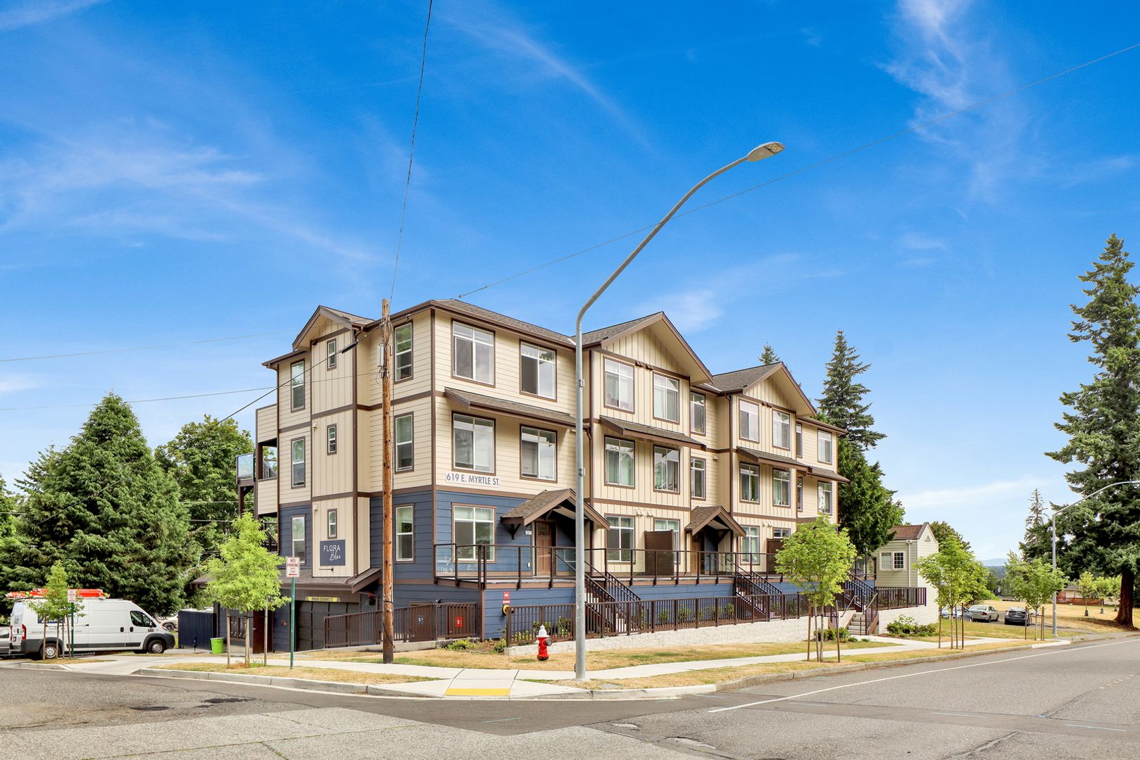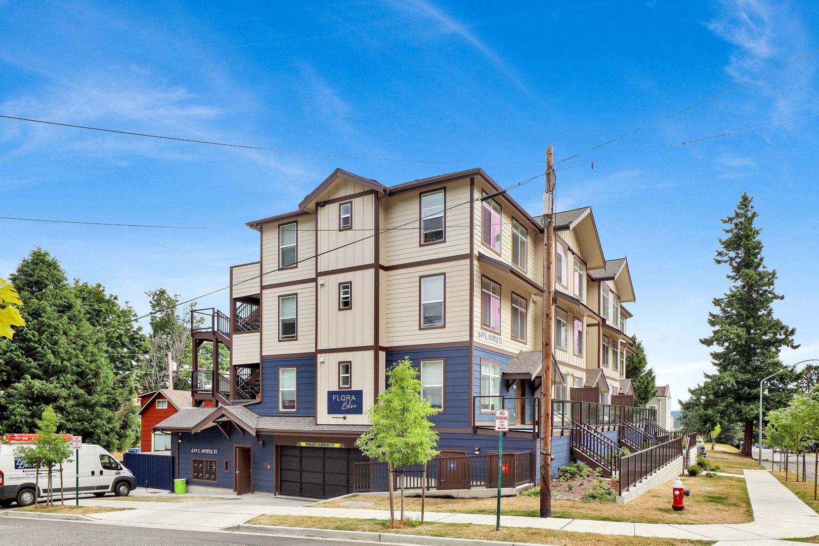 Welcome to Flora Blue! 4-bedroom, 3-bathroom units located near WWU in beautiful Bellingham. These spacious apartments feature stainless steel appliances, providing a modern touch to the kitchen. Units are equipped with a refrigerator, stove, oven, microwave, dishwasher, and washer and dryer! Garage parking is also available for added convenience and cost, some covered and some not for additional $70/month.