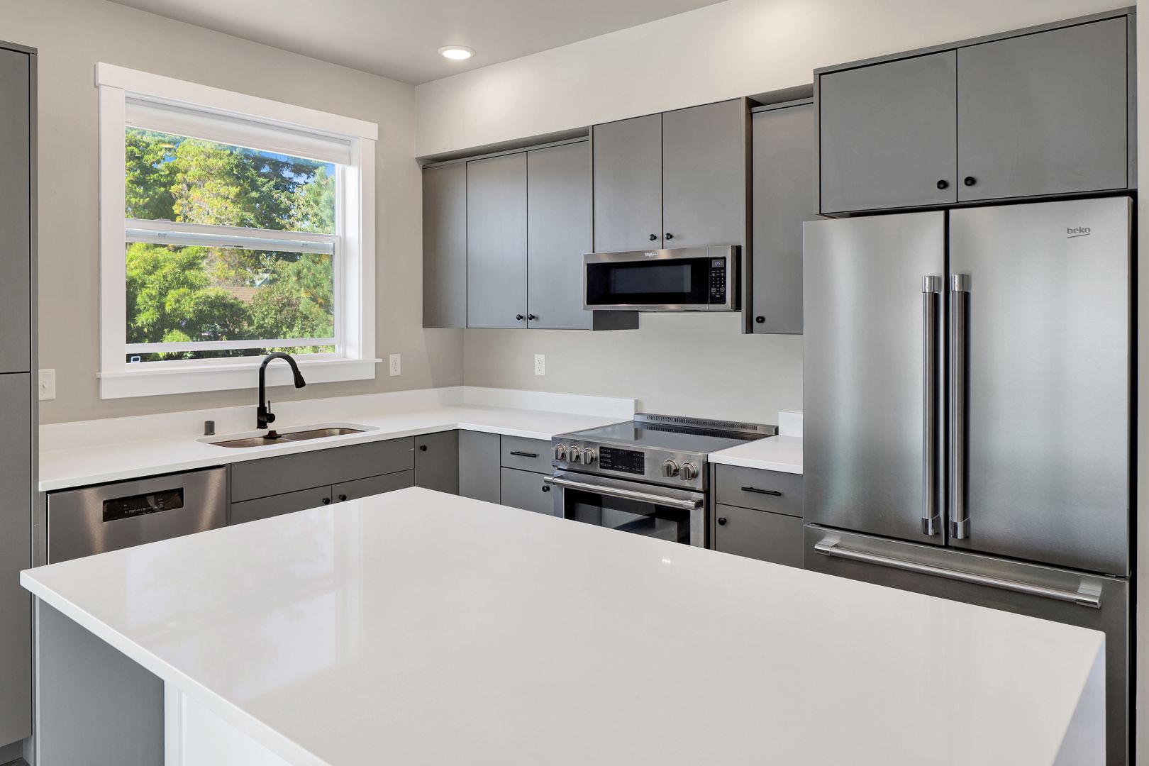 Enjoy stunning sunsets and beautiful water views from this spacious 3-bedroom, 2.5-bath apartment, which offers 2,164 square feet of living space. The kitchen is fully equipped with stainless steel appliances, including a refrigerator, oven, stove, dishwasher, and microwave, as well as elegant quartz countertops. Each unit also includes a washer, dryer, and air conditioning for your comfort. Conveniently located less than a mile from Downtown Blaine and Birch Bay, with easy access to I-5. Please note that tenants are responsible for all utility costs.
